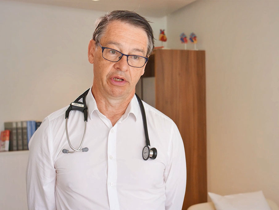 Seine Schwerpunkte waren über viele Jahre die Akutversorgung von Patienten in der Inneren Medizin und Kardiologie. Zu seinen Aufgaben zählten die Durchführung nicht-invasiver und invasiver Diagnostik sowie Schrittmacher-Implantationen im Spital und in der Ambulanz.
